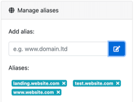 Cipi lets to manage unlimited domain aliases for each site. You can manage them in "Manage Alias" box into "MANAGE SITE" area.