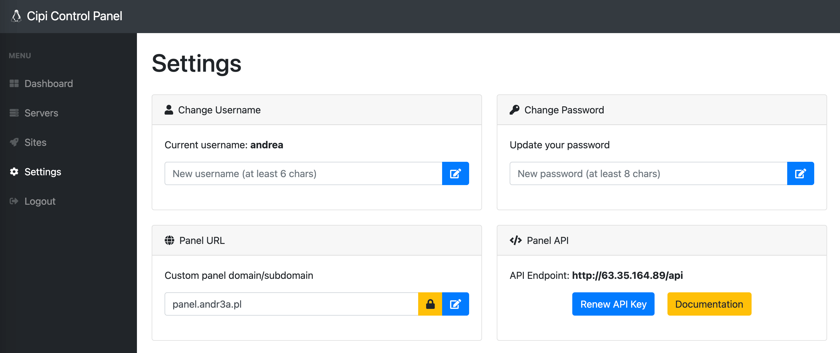 - To correctly manage remote servers Cipi has to be on a public IP address... do not use it in localhost!